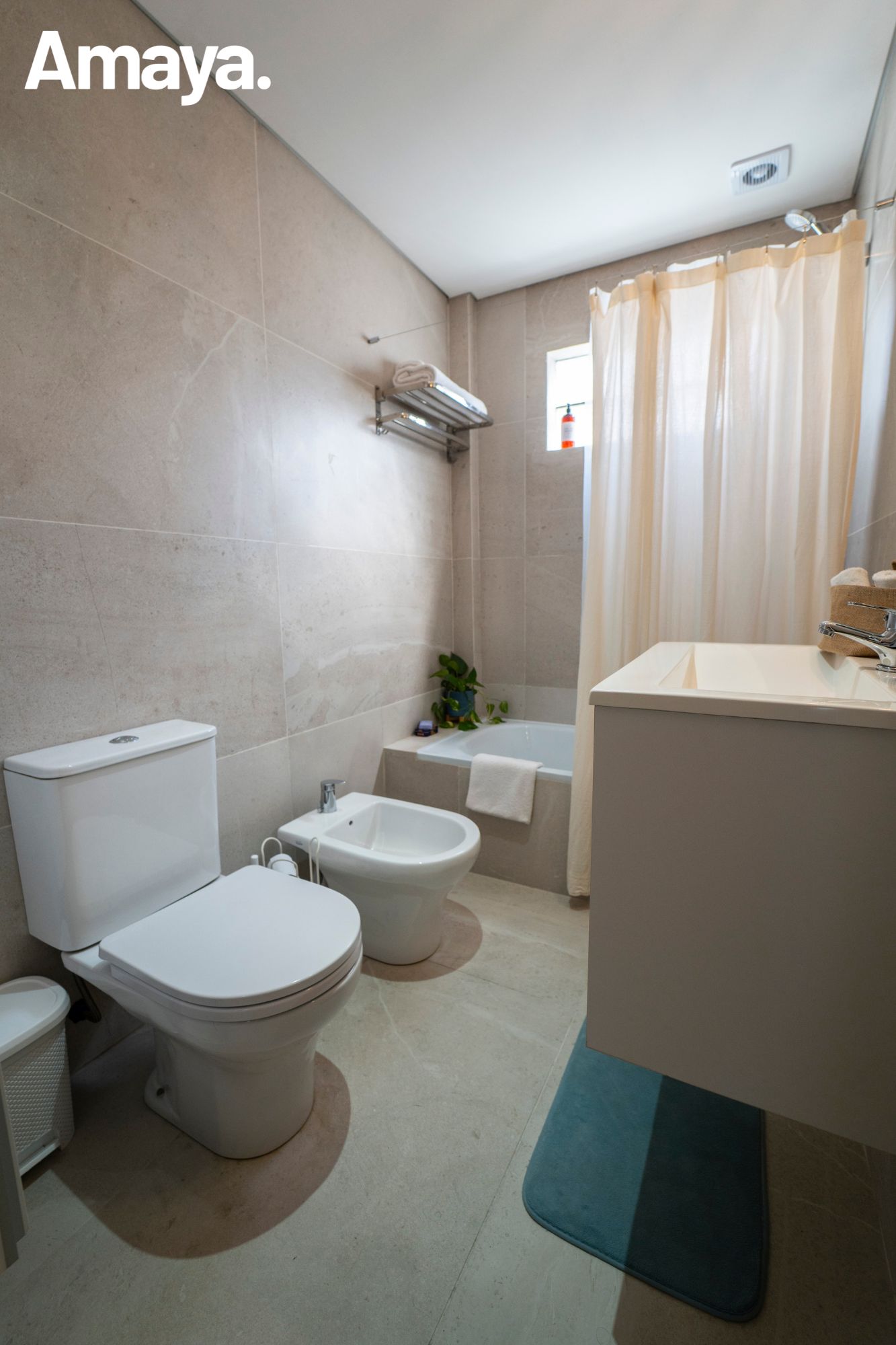 Baño completo con materiales modernos